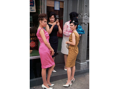 この写真では、5番街にある店の入り口で出会った4人の女性が、メイクを完璧に仕上げています。パレードの熱気と喧騒の中、マイロウィッツは人々の視線からすっかり外れ、その場の数々の印象へ瞬時に反応することができました。彼の目を捉えたのは、彼女たちの洋服の色や髪型、靴だったのでしょうか。