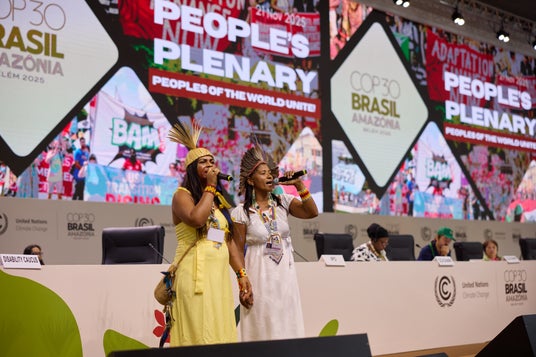 COP30は、過去最多の先住民コミュニティが参加しました。会場には先住民パビリオンが設置され、連帯アクションが実施されました。ブラジルはアマゾン地域を中心に、数百の先住民コミュニティが存在します。深刻化する石油開発や森林伐採の被害に直面する先住民たちは、自分たちの暮らしを守るため声を上げ、COPへの参加を求めましたが、運営側が会場に入れないなどの摩擦が見られたそうです。