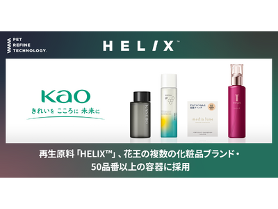 株式会社JEPLAN(代表取締役 執行役員社長:高尾 正樹、以下「JEPLAN」)のグループ会社・ペットリファインテクノロジー株式会社(代表取締役 執行役員社長:伊賀 大悟、以下「ペットリファインテクノロジー」)が製造・販売する再生原料「HELIX(TM)」は、花王株式会社(代表取締役 社長執行役員:長谷部 佳宏、以下「花王」)の複数の化粧品ブランド・50品番以上の容器に採用されています。このたび、これらの採用製品を「HELIX(TM)」ブランドサイトで公開しましたので、お知らせします。