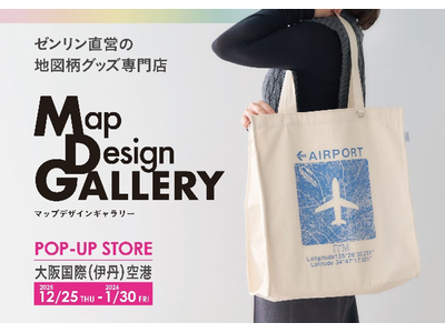 株式会社ゼンリン(本社:福岡県北九州市、代表取締役社長:竹川道郎、以下ゼンリン)は、2025年12月25日(木)から2026年1月30日(金)まで、地図がデザインされた文具・雑貨を販売するブランド「Map Design GALLERY」のPOP-UP STOREを、大阪国際(伊丹)空港中央ターミナル2階インフォメーション前に期間限定でオープンします。限定商品として地図柄のキャンバストートバッグやヒノキマグネットなどを販売するほか、大阪の難読地名が含まれる方面看板アクリルスタンドキーホルダーの新ラインナップ等を販売します。
