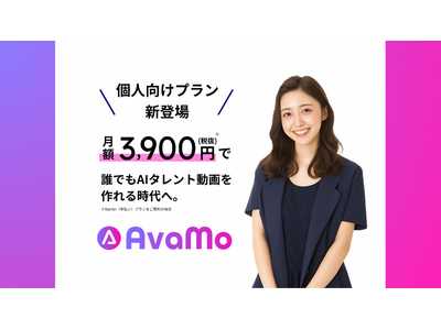 株式会社ベクトル(本社:東京都港区、代表取締役会長兼社長CEO:西江 肇司、東証プライム:6058、以下ベクトル)の子会社である株式会社オフショアカンパニー(本社:東京都港区、代表取締役:野呂 健太、以下オフショアカンパニー)は、2025年12月19日(金)より、日本初*1AIタレント動画生成サービス「AvaMo(アバモ)」において、個人事業主やクリエイター、SNS発信者などを対象に個人向け新プランの提供を開始いたします。月額3,900円(税抜)*2から利用でき、撮影・編集スキル不要で高品質なAIタレント動画を簡単に制作できるプランです。