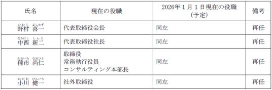 取締役体制(2026年3月26日付)、執行役員体制(2026年1月1日付)、執行役員体制(2026年4月1日付)については、以下のPDFよりご覧ください。