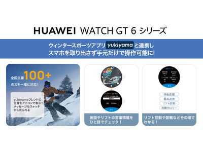 華為技術日本株式会社(ファーウェイ・ジャパン)は、スノーボーダー・スキーヤー向けスマートフォンアプリとして最大級のユーザー数を誇る「yukiyama」が、当社『HUAWEI WATCH GT 6 シリーズ』に、スマートウォッチとして初めて搭載されることをお知らせします。本アプリは本日、2025年12月19日(金)夜より提供開始します。