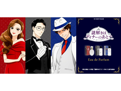 香水の輸入販売を手がけるフェアリーテイル株式会社(東京都港区)は、TVアニメ『謎解きはディナーのあとで』 より、登場キャラクターの「宝生麗子」「影山」「風祭京一郎」をイメージした香水を発売します。