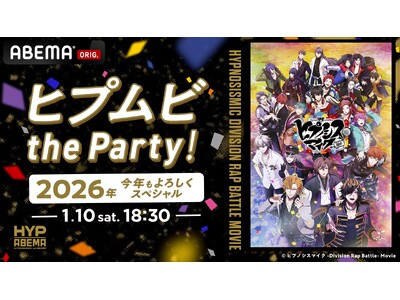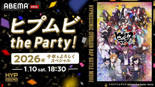 新しい未来のテレビ「ABEMA」は、“音楽原作キャラクターラッププロジェクト”『ヒプノシスマイク -Division Rap Battle-』の “重大情報を解禁”する特別番組『ヒプムビ the Party! 2026年今年もよろしくスペシャル』を、2025年1月10日(土)18時30分より独占無料生放送。同日20時からは、初の映画『ヒプノシスマイク -Division Rap Battle-』を声優キャストと一緒にお楽しみいただける応援上映会を「ABEMA PPV(アベマ ペイパービュー)」にて独占放送いたします。