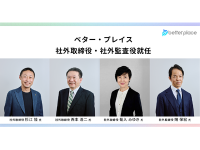 https://bpcom.jp/ 、以下、ベター・プレイス)は、2025年9月10日付で杉江 陸氏が社外取締役に、賜 保宏氏が社外監査役に、また2025年12月19日付で西本 浩二氏、菊入 みゆき氏が社外取締役に就任したことをお知らせいたします。