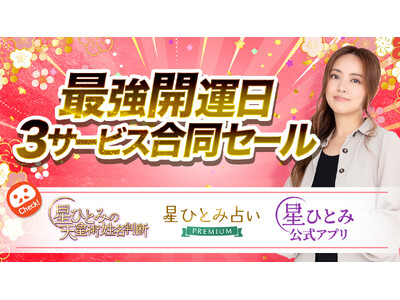 株式会社CAM(本社:東京都渋谷区、代表取締役社長:須田瞬海、以下CAM)は、運営する人気占い師・星ひとみさんが監修する3つのサービスにて、最強開運日に合わせた期間限定セールを開始したことをお知らせいたします。