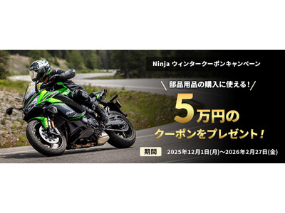 株式会社カワサキモータースジャパン(本社:兵庫県明石市、代表取締役社長:佐伯 健児)が展開するカワサキプラザネットワークでは、全国のカワサキプラザで"Ninja ZX-6Rシリーズ"及び“Ninja 1000SX/1100SXシリーズ”の新車をご成約いただいた方に、5万円分の部品用品購入サポートクーポンをプレゼントする「Ninja ウィンタークーポンキャンペーン」を実施中です。