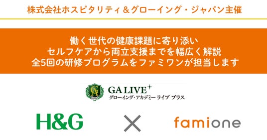 https://famione.com/benefit/ などを展開する株式会社ファミワン(本社:東京都渋谷区、代表取締役:石川勇介)は、株式会社ホスピタリティ&グローイング・ジャパンが提供するオンライン研修プログラム GA LIVE+(グローイングアカデミー ライブプラス) にて、