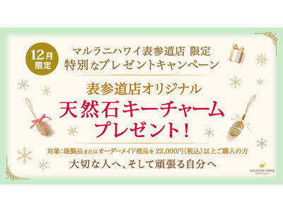 ハワイ発の天然石アクセサリーブランド「Malulani Hawaii(マルラニハワイ)」表参道店では、12月末日の期間限定で、冬のギフトシーズンにぴったりの特別キャンペーンを実施いたします。