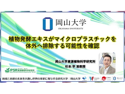 国立大学法人岡山大学(本部:岡山市北区、学長:那須保友)の高等先鋭研究院を構成するひとつである資源植物科学研究所(学術研究院先鋭研究領域)の杉本学准教授と株式会社機能性食品開発研究所の村上允唯研究開発室長、大林真帆研究員、村上欽俊旧研究開発室長は、植物発酵エキスが人工胃液や人工腸液中でマイクロプラスチックと結合する事を見出し、消化管からマイクロプラスチックを排除できる可能性を明らかにしました。