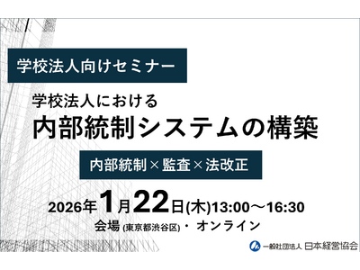 一般社団法人日本経営協会(所在地:東京都渋谷区、会長:高原 豪久)は、私立学校法改正を踏まえ、学校法人に求められる内部統制の在り方と実務対応を体系的に学ぶ講座「学校法人に求められる内部統制システムの構築」を、2026年1月22日(木)に開催いたします。