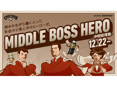 サントリー食品インターナショナル(株)は、「働く人の相棒」をコンセプトに商品やコミュニケーションを展開しているクラフトボスより、“一年間なにかに挟まれながらも懸命に働いてきたすべての人”に敬意を込めたコミュニケーション企画「MIDDLE BOSS HERO ~中間管理職~」を12月22日(月)から実施します。