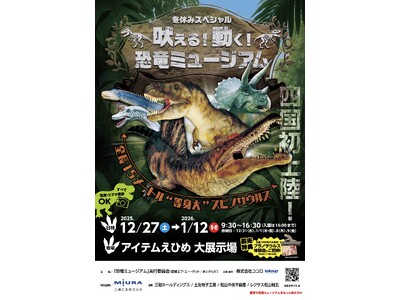 愛媛県松山市のアイテムえひめで、冬休み特別企画「恐竜ミュージアム」が12月27日より開催。リアルに動くロボット恐竜展示や体験型アトラクションが並ぶ会場に、P・SPOが飲食・体験ブースを出店します。