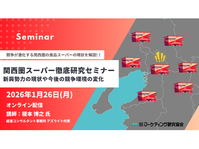 株式会社マーケティング研究協会は2026年1月26日オンラインセミナー「関西圏スーパー 徹底研究セミナー ~新興勢力の現状や今後の競争環境の変化~」を開催します。