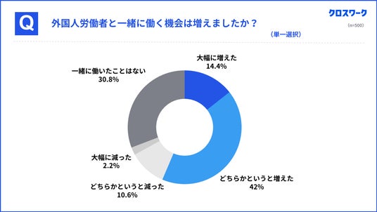 ・外国人労働者と働く機会、増加が56%