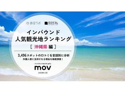 業界最大級のインバウンドビジネスメディア「訪日ラボ」及び 店舗向け集客一元化プラットフォーム「口コミコム」を運営する株式会社mov(代表取締役:渡邊 誠、本社:東京都渋谷区、以下mov)は、沖縄県の観光地に寄せられた最新の口コミデータから、独自の『インバウンド人気観光地ランキング』を発表しました。
