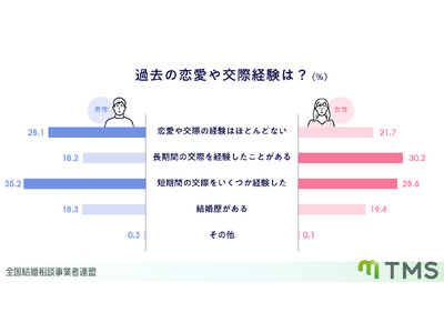 全国の1300店舗以上の結婚相談所が加盟し、成婚率の高いサービスを誇るTMS 全国結婚相談事業者連盟(https://www.nakoudonet.com/)は、現在結婚相談所で活動中の男女を対象に、入会前の「過去の恋愛経験」および「婚活方法」に関するアンケートを実施しました。その結果、会員の多くがこれまでの恋愛や婚活に多様な経験を持ちながら、最終的に結婚相談所を選んでいる実態が明らかとなりました。