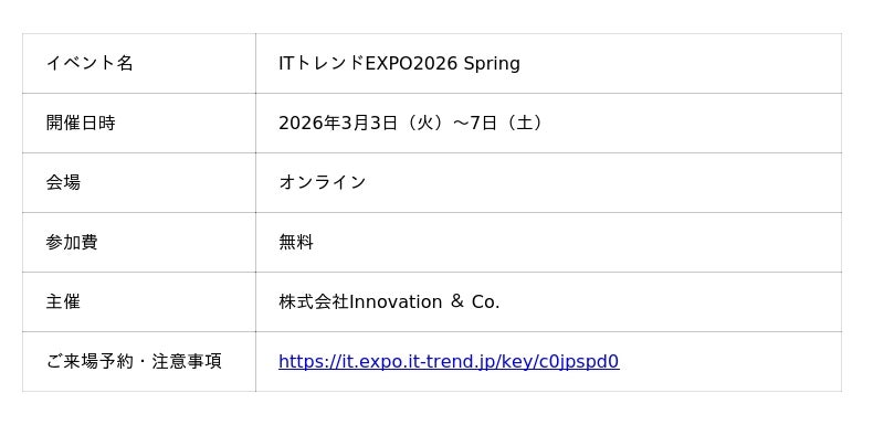 クラウド型在庫管理システムのリーディングカンパニーであるロジザード株式会社(東京都中央区、代表取締役社長:金澤 茂則、以下:ロジザード)は、2026年3月3日から7日に開催されるIT製品の比較サイト"ITトレンド"主催のオンライン展示会『ITトレンドEXPO2026 Spring』に出展いたします。