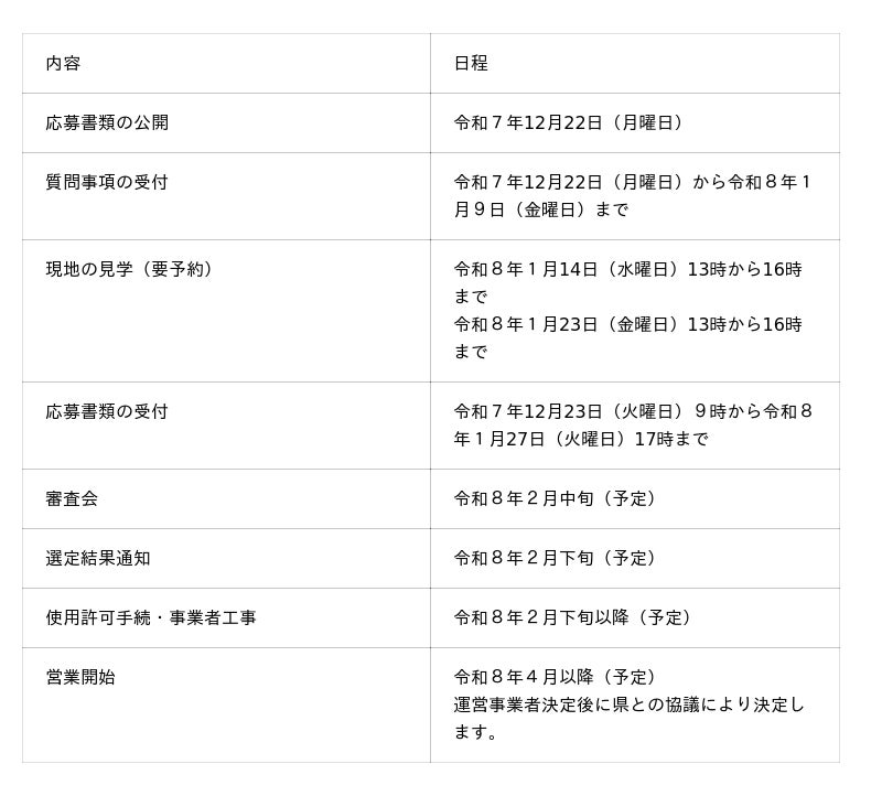飲食店又は喫茶店の営業・運営に携わった実績があること等(詳細は募集要項をご確認ください。)