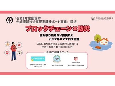 渋谷Web3大学株式会社(本社:東京都渋谷区、代表取締役:北村 元、以下「渋谷Web3大学」)は、福岡県飯塚市の「令和7年度飯塚市先端情報技術実証実験サポート事業」の採択プロジェクトとして、防災分野において世界初となるDID/VC(分散型ID・検証可能な証明書)を活用した実証実験を2025年12月より開始いたします。
