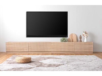 前板には波状の立体デザインを採用することにより、光の当たり方で陰影が生まれ、シンプルながらも上質なデザインに仕上げています。波状の縦ラインが同じ間隔で続くことで、複数台つなげても継ぎ目が目立ちにくく、まるで1台のテレビ台のような統一感のあるデザインです。