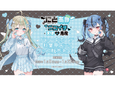 「新兎わい」「天羽しろっぷ」の「ニコイチ」をテーマにしたイラストを用いたグッズの販売、パネルの展示、コメンタリー映像の放映、店内放送等も実施いたします。
