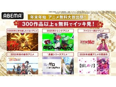 新しい未来のテレビ「ABEMA」は、2025年12月22日(月)より、「年末年始 アニメ無料大放出祭」と題した、人気アニメ300作品以上を無料放送・配信する、年末年始の特別企画を開催いたします。