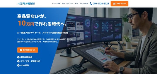 マーケティング領域のAIソリューションおよびコンサルティングを提供するAi CMO株式会社(本社:東京都目黒区、代表取締役:高田 竜次、以下、当社)は、予算を抑えつつ成果の出るランディングページ(LP)を制作したい企業のニーズに応えるため、AI技術と厳選されたプロデザイナーを組み合わせた新サービス「10万円LP制作所」の提供を開始いたしました。