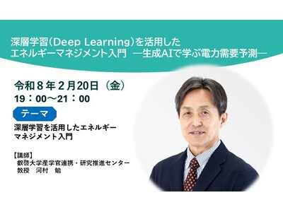 深層学習(Deep Learning)を活用したエネルギーマネジメント入門―生成AIで学ぶ電力需要予測―」と題して、公開講座を開催します。カーボンニュートラルの実現に向け、ビルや工場などで電力を無駄なく使う「エネルギーマネジメント」の重要性が高まっています。本講座では、エネルギー管理に携わる方だけでなく、AI活用に関心のある一般の社会人の方も対象に、生成AIを使って電力需要(電力消費量)を予測する仕組みを分かりやすく解説します。