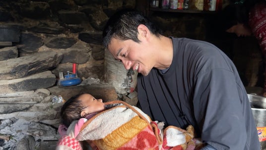 そして、1人旅2日目、人々の暮らしを知るため村の散策へ出た東出は、“ヤク”を探して片道1時間の急斜面を登り、丘の上にあるヤク飼い農家へ。“冬虫夏草”を採りに行った母、ヤクの放牧に出ている夫の留守を守る17歳の少女に出会った東出は、自宅に招かれ、ヤクの“スジャ”(ブータンの伝統的なバター茶)を振る舞われます。そこには生後3ヶ月の赤ちゃんの姿もあり、「抱いても大丈夫ですか?」と少女に声をかけ、赤ちゃんを抱っこした東出は「うちの子も今5ヶ月なんです」「うちは女の子」と優しい笑顔に。赤ちゃんをあやす東出の姿に視聴者からは「父の顔だ」「でっくん優しい顔」「いい顔するなぁ」などの声が寄せられました。翌日もこの少女の元を訪れ、ヤクの乳搾り体験をさせてもらった東出は、自腹で出産祝いを渡しました。