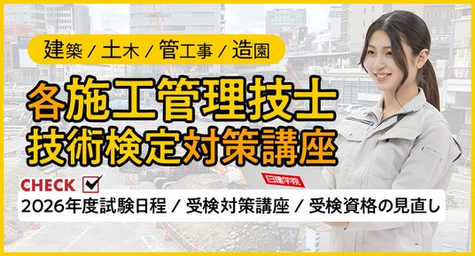 詳しくはこちら2026年度(令和8年度)施工管理技術検定 スケジュール・対策講座