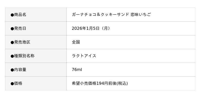 ロッテのチョコレート「ガーナ」ブランドから展開される「ガーナ アイス」。ガーナアイスシリーズから、いちご尽くしフレーバー「ガーナチョコ&クッキーサンド 恋味いちご」を1月5日(月)より発売します。パッケージはいちごをあしらったピンク色が映えるデザインで、いちごの季節をかわいらしく演出します。この時期だけの味わいをぜひお楽しみください!
