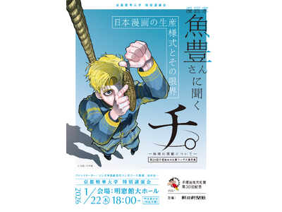 京都精華大学では、2026年1月22日(木)に京都精華大学明窓館大ホールにて、手塚治虫文化賞第30回を記念し、朝日新聞社主催による特別講演会を開催いたします。本講演には、大ヒット漫画『チ。-地球の運動について-』の作者である、漫画家・魚豊氏をお招きします。