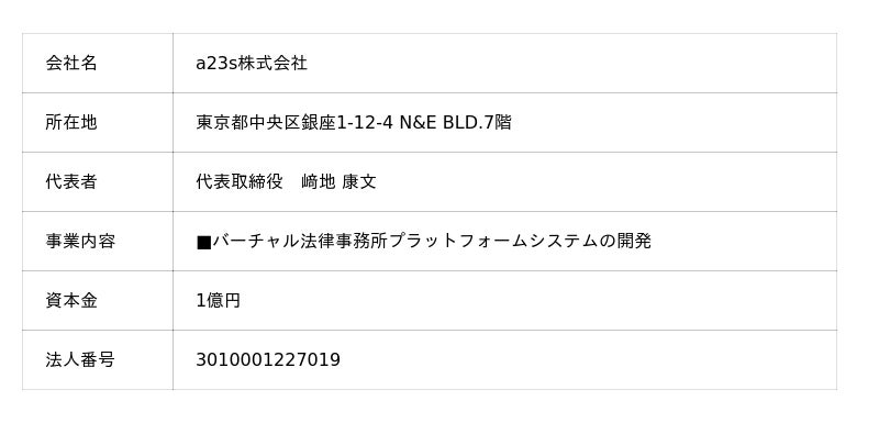 【 a23s株式会社(クラウドリーガル)】(URL:https://www.cloudlegal.ai/)
