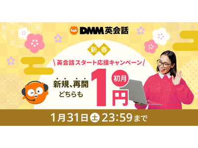 合同会社DMM.com(本社:東京都港区、PFカンパニーCEO:村中悠介、以下DMM)が運営する「DMM英会話」(https://eikaiwa.dmm.com/)は2026年の英会話スタートダッシュを全面的にサポートするため、1月1日(木)から1月31日(土)の期間中、「新春英会話応援スタートキャンペーン」を開催いたします。期間中、スタンダードプランまたはプラスネイティブプランに新規入会・再入会された方を対象に、初月の月額料金を特別価格の1円でご提供いたします。