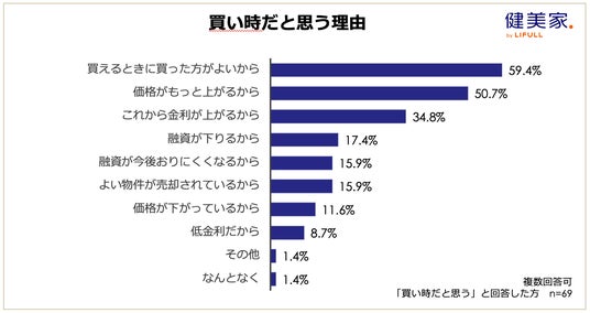 実際、『戦略に関する意識調査』において、年収3,000万円以上の高所得層では、「都心部の資産価値重視(インカムよりキャピタル狙い)にシフトした」との回答が23.6%と突出して高く、インフレ時代ならではの資産防衛色が色濃く出ています。[図4]一方で、より幅広い層を対象とした『意識調査』をみても、投資用不動産が買い時と判断する理由として「価格がもっと上がるから(50.7%)」という先高観が上位を占めており、更なる価格上昇を見越した“駆け込み需要”が市場を支えていることがわかります。[図5]