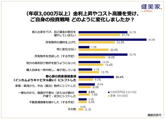 『戦略に関する意識調査』よると、金利上昇やコスト高騰を受けた投資戦略の変化として、「所有物件の賃料を上げた」と回答した投資家は全体の24.3%に達しました。[図7]
