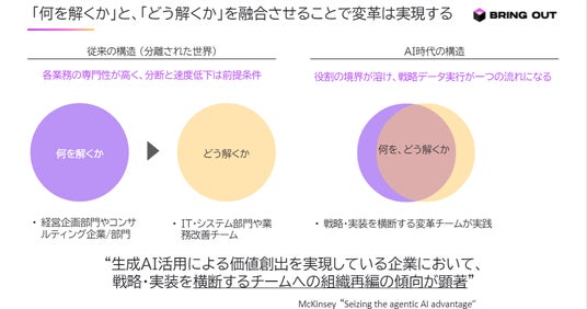 ブリングアウトは「対話をデータ化して経営を変革する」ことを掲げ、AIを活用した経営変革を行うAXファーム(AX:AI Transformation)です。