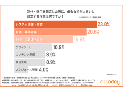 株式会社オールトゥデイ(本社所在地:埼玉県さいたま市)は、金融・保険業界の店舗・サービスを運営する企業の1.経営者2.マーケティング担当者かつLP/アプリの制作・リニューアルを検討したことがあると回答した方を対象に、「金融・保険業界の店舗ビジネスにおけるLP・アプリ制作の課題と成果」に関する実態調査を実施しましたので、その結果を公表します。