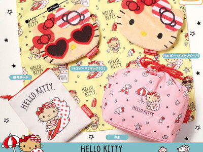 株式会社サンリオのハローキティが日焼けしたデザインを使用した、可愛いポーチコレクションがカプセルトイに登場!