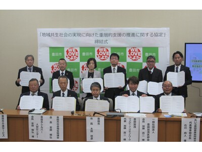 この度、本市が他自治体に先行して取り組んでいる、身寄りを頼ることのできない高齢者への支援に関する連携や、現在国の社会保障審議会福祉部会で議論されているような地域共生社会の実現に向けた課題への対応をさらに加速させるため、豊田市社会福祉協議会など関係する13団体と、共働の基盤となる「地域共生社会の実現に向けた重層的支援の推進に関する協定」を2025年12月22日(月)に締結しました。