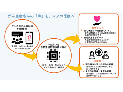 株式会社リサ・サーナ/一般社団法人ピアリング(所在地:神奈川県横浜市、代表:上田暢子)は、慶應義塾大学薬学部医薬品情報学講座(所在地:東京都港区、堀里子教授)と共同で、「がん患者ピア・サポートコミュニティの投稿に基づく経験の可視化:自然言語処理による症状・感情・関心の抽出と分析」研究を開始しました。