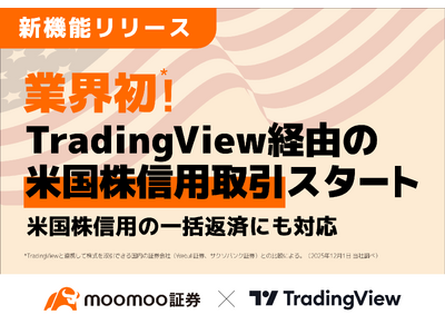 moomoo証券株式会社(ムームー、本社:東京都渋谷区、代表取締役社長:伊澤フランシスコ、以下「moomoo証券」)は、米国株信用取引におけるユーザー体験向上を目的として、信用取引の一括返済(決済)機能およびTradingView経由での信用取引機能の提供を開始いたしました。これにより、これまでアクティブトレーダーのお客様から要望の多かった「決済の煩雑さ」や「分析と取引の分断」といった課題が解消され、moomoo証券での米国株信用取引がさらに便利になります。