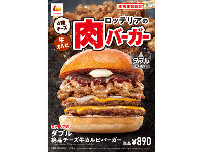 「肉バーガーフェア」では、年末年始の特別なひとときにぴったりな、食べ応え抜群の贅沢バーガー「ダブル絶品チーズ牛カルビバーガー」を提供します。