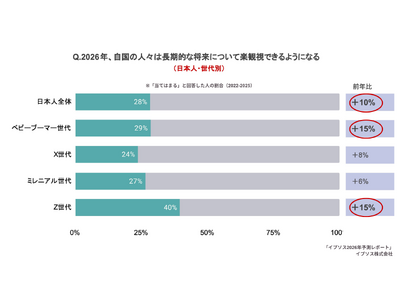 世界最大規模の世論調査会社イプソス株式会社(日本オフィス所在地:東京都港区、代表取締役:内田俊一)は、日本を含む世界30か国23,642人を対象に意識調査を実施し「2026年予測レポート」を公開しました。
