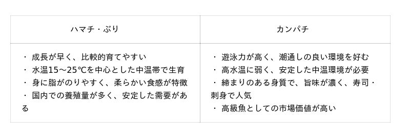ハマチとカンパチは似た青魚ですが、生態・味わい・育成環境への適性に違いがあります。