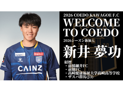 この度、2026シーズンより、明治安田J3リーグに所属するザスパ群馬より新井 夢功選手がCOEDO KAWAGOE F.Cへ育成型期限付き移籍にて加入することが決定しましたので、お知らせします。