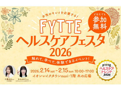 https://fytte.jp/)は、2026年2月14日(土)、15日(日)の2日間にわたり、国内最大級のショッピングモールであるイオンレイクタウンにて、イベント「FYTTEヘルスケアフェスタ2026」を開催することが決定しました。FYTTEを象徴する2大企画である「FYTTEヘルスケアトレンド」と「FYTTEダイエット&ヘルス大賞」を、トークショーや展示ブース、サンプリングなどを通して参加者が見て・聞いて・学んで・試せる体験型リアルイベントを展開予定です。