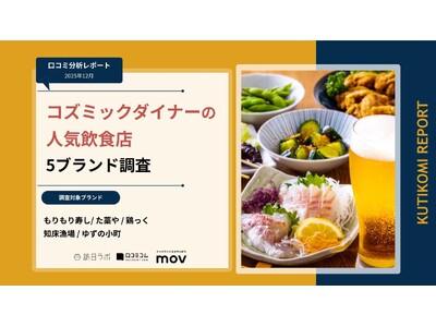 株式会社コズミックダイナーが展開する飲食店5ブランド「もりもり寿し」「た藁や」「鶏っく」「知床漁場」「ゆずの小町」の口コミを独自調査